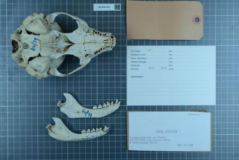 | Keywords: Naturalis Biodiversity Center - ZMA.MAM.22562 pal - Phoca vitulina Linnaeus, 1758 - skull.jpeg artwork Dimensions artwork Document type Phoca Individual count 1 Infraspecific epithet Infraspecific rank Institution Naturalis Kind of unit artwork Kind of unit specimen skull Life stage Netherlands Texel Dijkmanshuizen Medium artwork Nomenclatural code Occurrence ID page Other fields Other versions artwork Permission license Naturalis donation CC-0 Publication location Scientific name Phoca vitulina Linnaeus 1758 Scientific name authorship Linnaeus 1758 female Source url http //bioportal naturalis nl Specific epithet vitulina State or province Texel Subject keywords artwork Subject keywords publication Title artwork Title publication Type status Uploaded with GWToolset Naturalis_Biodiversity_Center_-_ZMA MAM 22562_pal_-_Phoca_vitulina_Linnaeus _1758_-_skull http //medialib naturalis nl/file/id/ZMA MAM 22562_pal/format/large Mammals at Naturalis from the Zoölogisch Museum Amsterdam Media donated by Naturalis Biodiversity Center Phoca vitulina Phoca |