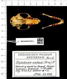 | Keywords: Naturalis Biodiversity Center - ZMA.MAM.22705.a pal - Styloctenium wallacei - skull.jpeg artwork Dimensions artwork Document type Styloctenium Individual count Infraspecific epithet Infraspecific rank Institution Naturalis Kind of unit artwork Kind of unit specimen skull Life stage Gekocht op markt te Imandi Noord-Sulawesi Indonesia Medium artwork Nomenclatural code Occurrence ID page Other fields Other versions artwork Permission license Naturalis donation CC-0 Publication location Scientific name Styloctenium wallacei Scientific name authorship male Source url http //bioportal naturalis nl Specific epithet wallacei State or province Subject keywords artwork Subject keywords publication Title artwork Title publication Type status Uploaded with GWToolset Naturalis_Biodiversity_Center_-_ZMA MAM 22705 a_pal_-_Styloctenium_wallacei_-_skull http //medialib naturalis nl/file/id/ZMA MAM 22705 a_pal/format/large Mammals at Naturalis from the Zoölogisch Museum Amsterdam Media donated by Naturalis Biodiversity Center Styloctenium wallacei Styloctenium |