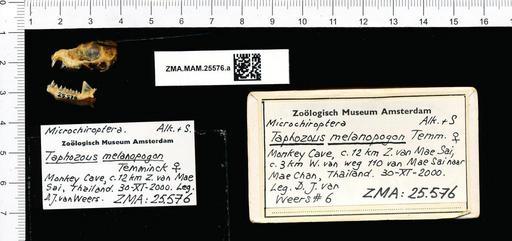 | Keywords: Naturalis Biodiversity Center - ZMA.MAM.25576.a lat - Taphozous melanopogon - skull.jpeg artwork Dimensions artwork Document type Taphozous Individual count 1 Infraspecific epithet Infraspecific rank Institution Naturalis Kind of unit artwork Kind of unit specimen skull Life stage Monkey Cave c 12 km z van Mae Sai c 3 km w van weg 110 van Mae Sai nar Mae Chan Thailand Medium artwork Nomenclatural code Occurrence ID page Other fields Other versions artwork Permission license Naturalis donation CC-0 Publication location Scientific name Taphozous melanopogon Scientific name authorship female Source url http //bioportal naturalis nl Specific epithet melanopogon State or province Subject keywords artwork Subject keywords publication Title artwork Title publication Type status Uploaded with GWToolset Naturalis_Biodiversity_Center_-_ZMA MAM 25576 a_lat_-_Taphozous_melanopogon_-_skull http //medialib naturalis nl/file/id/ZMA MAM 25576 a_lat/format/large Mammals at Naturalis from the Zoölogisch Museum Amsterdam Media donated by Naturalis Biodiversity Center Taphozous melanopogon Taphozous |