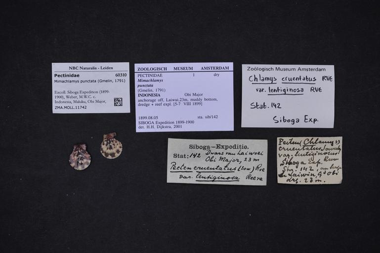 | Keywords: Naturalis Biodiversity Center - ZMA.MOLL.11742 - Mimachlamys punctata (Gmelin, 1791) - Pectinidae - Mollusc shell.jpeg artwork Dimensions artwork Document type Pectinidae subfamily Chlamydinae Mimachlamys Dijkstra H H Individual count Infraspecific epithet Infraspecific rank Institution Naturalis Kind of unit artwork Kind of unit specimen shell Life stage Indonesia Maluku Obi Major anchorage off Laiwui 23 m mud Hensen vertical net electric light in vertical net townet dredge reef-exploration; lat -1 3396 lon 127 6025; 7-viii-1899 stn sib/142 Medium artwork Nomenclatural code Collection remarks Moll Scale the width of the text on the species/QR-code label is 38 mm Occurrence ID page Pectinoida Other fields Other versions artwork Permission license Naturalis donation CC-0 Mollusca Publication location Scientific name Mimachlamys punctata Gmelin 1791 Scientific name authorship Gmelin 1791 Source url http //bioportal naturalis nl Specific epithet punctata State or province Maluku Subject keywords artwork Subject keywords publication Title artwork Title publication Type status Uploaded with GWToolset Naturalis_Biodiversity_Center_-_ZMA MOLL 11742_-_Mimachlamys_punctata_ Gmelin _1791 _-_Pectinidae_-_Mollusc_shell http //medialib naturalis nl/file/id/ZMA MOLL 11742/format/large Media donated by Naturalis Biodiversity Center Molluscs at Naturalis from the Zoölogisch Museum Amsterdam Mimachlamys punctata |
