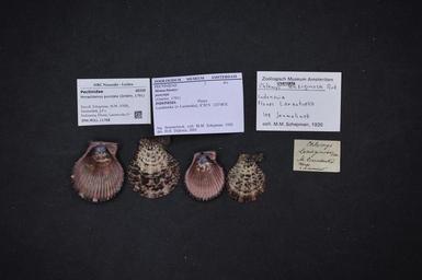 | Keywords: Naturalis Biodiversity Center - ZMA.MOLL.11768 - Mimachlamys punctata (Gmelin, 1791) - Pectinidae - Mollusc shell.jpeg artwork Dimensions artwork Document type Pectinidae subfamily Chlamydinae Mimachlamys Dijkstra H H Individual count Infraspecific epithet Infraspecific rank Institution Naturalis Kind of unit artwork Kind of unit specimen shell Life stage Indonesia Flores Larantoeka Larantuka 08°20ÿS 123°00ÿE; lat -8 333333 lon 123 Medium artwork Nomenclatural code Collection remarks Moll Scale the width of the text on the species/QR-code label is 38 mm Occurrence ID page Pectinoida Other fields Other versions artwork Permission license Naturalis donation CC-0 Mollusca Publication location Scientific name Mimachlamys punctata Gmelin 1791 Scientific name authorship Gmelin 1791 Source url http //bioportal naturalis nl Specific epithet punctata State or province Flores Subject keywords artwork Subject keywords publication Title artwork Title publication Type status Uploaded with GWToolset Naturalis_Biodiversity_Center_-_ZMA MOLL 11768_-_Mimachlamys_punctata_ Gmelin _1791 _-_Pectinidae_-_Mollusc_shell http //medialib naturalis nl/file/id/ZMA MOLL 11768/format/large Media donated by Naturalis Biodiversity Center Molluscs at Naturalis from the Zoölogisch Museum Amsterdam Mimachlamys punctata |