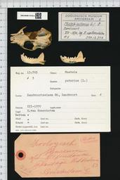 | Keywords: Naturalis Biodiversity Center - ZMA.MAM.13703.a pal - Mustela putorius Linnaeus - skull.jpeg artwork Dimensions artwork Document type Mustela Individual count 1 Infraspecific epithet Infraspecific rank Institution Naturalis Kind of unit artwork Kind of unit specimen skull Life stage Netherlands Noord Holland Zandvoort Zandvoortse Laan Medium artwork Nomenclatural code Occurrence ID page Other fields Other versions artwork Permission license Naturalis donation CC-0 Publication location Scientific name Mustela putorius Linnaeus Scientific name authorship Linnaeus male Source url http //bioportal naturalis nl Specific epithet putorius State or province Noord Holland Subject keywords artwork Subject keywords publication Title artwork Title publication Type status Uploaded with GWToolset Naturalis_Biodiversity_Center_-_ZMA MAM 13703 a_pal_-_Mustela_putorius_Linnaeus_-_skull http //medialib naturalis nl/file/id/ZMA MAM 13703 a_pal/format/large Mammals at Naturalis from the Zoölogisch Museum Amsterdam Media donated by Naturalis Biodiversity Center Mustela putorius Mustela |