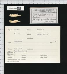| Keywords: Naturalis Biodiversity Center - ZMA.MAM.14044.a gen - Mustela putorius Linnaeus - skull.jpeg artwork Dimensions artwork Document type Mustela Individual count 1 Infraspecific epithet Infraspecific rank Institution Naturalis Kind of unit artwork Kind of unit specimen skull Life stage Netherlands Noord Holland Zandvoort Medium artwork Nomenclatural code Occurrence ID page Other fields Other versions artwork Permission license Naturalis donation CC-0 Publication location Scientific name Mustela putorius Linnaeus Scientific name authorship Linnaeus female Source url http //bioportal naturalis nl Specific epithet putorius State or province Noord Holland Subject keywords artwork Subject keywords publication Title artwork Title publication Type status Uploaded with GWToolset Naturalis_Biodiversity_Center_-_ZMA MAM 14044 a_gen_-_Mustela_putorius_Linnaeus_-_skull http //medialib naturalis nl/file/id/ZMA MAM 14044 a_gen/format/large Mammals at Naturalis from the Zoölogisch Museum Amsterdam Media donated by Naturalis Biodiversity Center Mustela putorius Mustela |