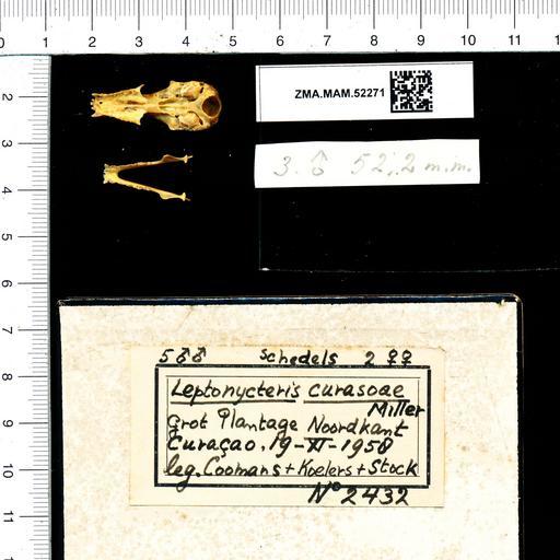 Keywords: Naturalis Biodiversity Center - ZMA.MAM.52271 pal - Leptonycteris curasoae - skull.jpeg artwork Dimensions artwork Document type Leptonycteris Individual count 1 Infraspecific epithet Infraspecific rank Institution Naturalis Kind of unit artwork Kind of unit specimen skull Life stage Grot Plantage Noordkant CuraƧao Medium artwork Nomenclatural code Occurrence ID page Other fields Other versions artwork Permission license Naturalis donation CC-0 Publication location Scientific name Leptonycteris curasoae Scientific name authorship male Source url http //bioportal naturalis nl Specific epithet curasoae State or province Subject keywords artwork Subject keywords publication Title artwork Title publication Type status Uploaded with GWToolset Naturalis_Biodiversity_Center_-_ZMA MAM 52271_pal_-_Leptonycteris_curasoae_-_skull http //medialib naturalis nl/file/id/ZMA MAM 52271_pal/format/large Mammals at Naturalis from the Zoƶlogisch Museum Amsterdam Media donated by Naturalis Biodiversity Center Leptonycteris curasoae Leptonycteris |