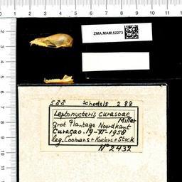 | Keywords: Naturalis Biodiversity Center - ZMA.MAM.52273 lat - Leptonycteris curasoae - skull.jpeg artwork Dimensions artwork Document type Leptonycteris Individual count 1 Infraspecific epithet Infraspecific rank Institution Naturalis Kind of unit artwork Kind of unit specimen skull Life stage Grot Plantage Noordkant CuraƧao Medium artwork Nomenclatural code Occurrence ID page Other fields Other versions artwork Permission license Naturalis donation CC-0 Publication location Scientific name Leptonycteris curasoae Scientific name authorship female Source url http //bioportal naturalis nl Specific epithet curasoae State or province Subject keywords artwork Subject keywords publication Title artwork Title publication Type status Uploaded with GWToolset Naturalis_Biodiversity_Center_-_ZMA MAM 52273_lat_-_Leptonycteris_curasoae_-_skull http //medialib naturalis nl/file/id/ZMA MAM 52273_lat/format/large Mammals at Naturalis from the Zoƶlogisch Museum Amsterdam Media donated by Naturalis Biodiversity Center Leptonycteris curasoae Leptonycteris |