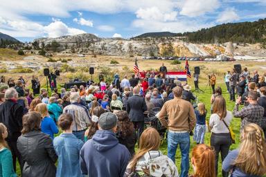 | Keywords: 2016 naturalization ceremony The Honorable Mark L. Carman presides over a naturalization ceremony in Mammoth Hot Springs. NPS/Neal Herbert. The Honorable Mark L. Carman presides over a naturalization ceremony in Mammoth Hot Springs. NPS/Neal Herbert. |