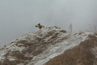 Keywords: nature animal pet dog mountain rock stone looking top above granite mammal canine fur outdoors alone