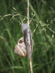 Keywords: nature animal snail course east green brown slimy climb creature molluscs shell grey leaf