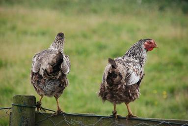Keywords: nature bird chicken them grass fence back