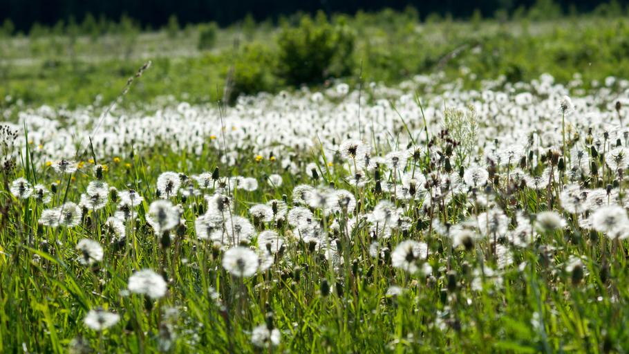 Keywords: nature field dandelions summer bloom pollen
