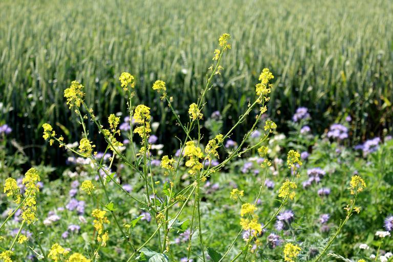 Keywords: nature flora flowers oilseed rape rape blossoms wheat field background yellow