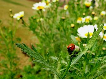 Keywords: nature garden insect ladybug flowerbed daisy flowers