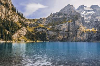 Keywords: nature landscape lake mountains lake oeschinen kandersteg switzerland blue lake alpine sky abendstimmung wallpaper blue sky holiday bank evening sky mirroring summer snow mountain peak