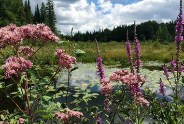 Keywords: nature landscape majestic outdoor sky forest trees flowers water pond clouds summer scenery view tranquil wonderful natural ecology beautiful serene quiet wilderness environment