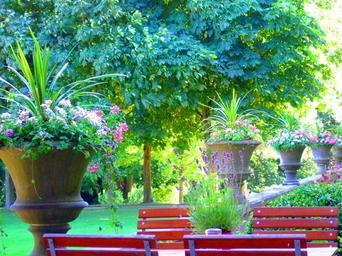Keywords: nature landscape still life cafe table park summer flowers chairs interruption picnic
