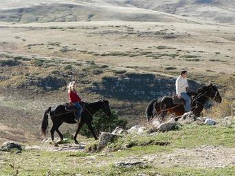 Keywords: nature mountains horses tourists