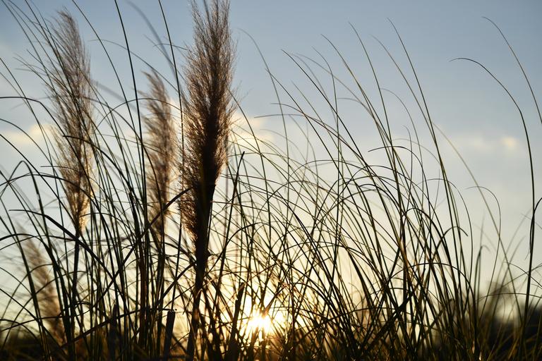 Keywords: nature plants grass growth closeup sunshine through backlight sunset green environment ecology field