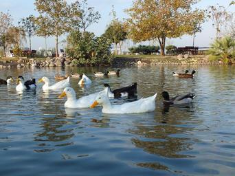 Keywords: nature pond green flower spring bird duck peaceful environment animal resting place peace calm