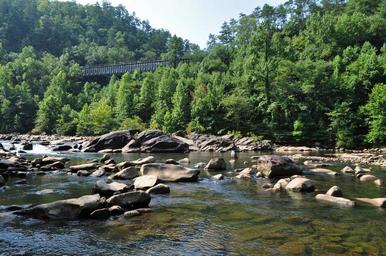 Keywords: nature reserve river torrent railway current rocks water courses bridge landscape usa cherokee