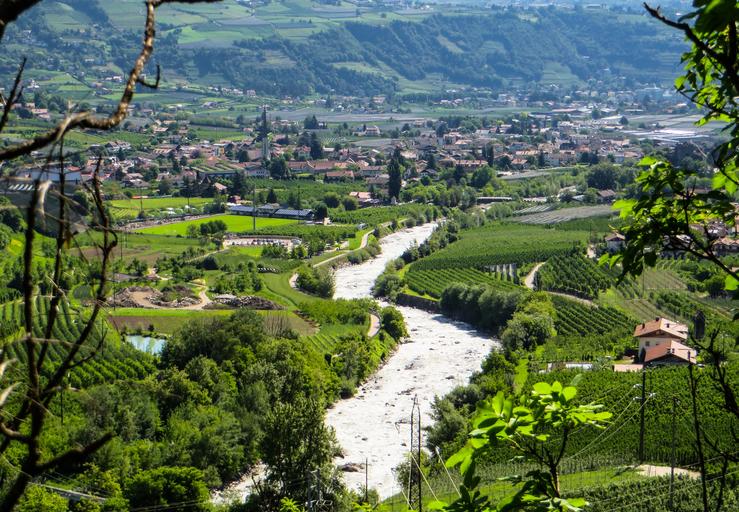 Keywords: nature river landscape italy south tyrol meran holiday adige wine enjoy mountains panorama