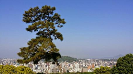 Keywords: nature shikoku japan lonely tree cityscape skyline