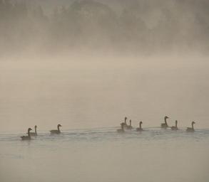 Keywords: nature spring morning water fog ducks