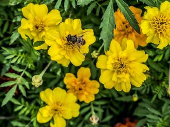 Keywords: nature summer plant leaves flowers orange large closeup bumblebee nectar insect