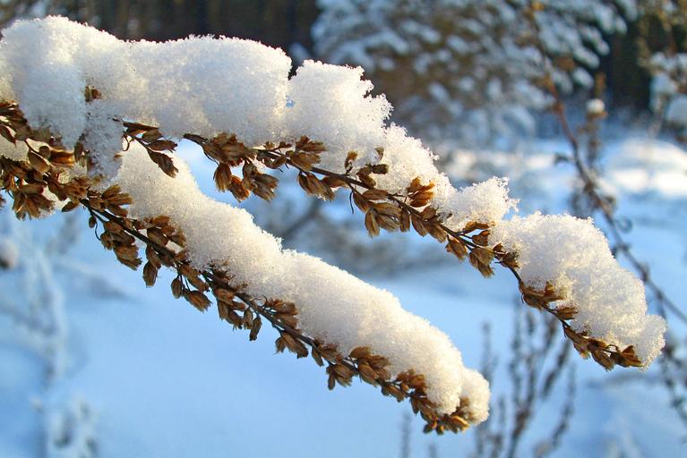 Keywords: nature winter forest snow grass plant under the snow dry grass seeds closeup sunset white furry plants living nature