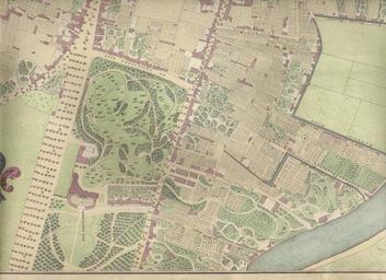 | Keywords: Nautz1827.jpg Southern portion of Nautz 1829 map of Haarlem showing Welgelegen as it was in 1827 Map date 1829 Colored copper engraving by W C van Baarsel in Amsterdam Source Ferdinand Joseph Nautz 1785-1841 surveyor Nautz was a member of a group of surveyors hired in 1817 to map the Dutch towns in order serve as a basis for taxes The hand-colored and hand-drawn maps were created in 1822 by Nautz and his colleagues H C van Dooren and A van Diggelen They are in the possession of the National Archives For the town of Haarlem Nautz created a set of maps of Haarlem where not only ownership rights but also houses were drawn Quite popular these maps were reproduced by book sellers and sold at the time for 3 guilders to travelers as the first city-maps This set of maps belongs to the city of Haarlem and has been used as the basis for city planning as late as 1900 In the archive museum of Haarlem a model of the city is on show based on this map Scanned from 2002 reproduction of one of many copies of the 'Nautz of Haarlem' in possession of North Holland Archives Archiefdienst voor Kennemerland/Historische Museum Zuid-Kennemerland Haarlem PD-old Old maps of Haarlem Haarlemmerhout Ferdinand Joseph Nautz Frederikspark Haarlem Paviljoen Welgelegen |