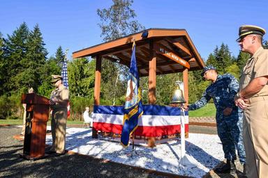| Keywords: Naval Base Kitsap & Navy Gold Star Program hold Inaugural Bells Across America Remembrance Event 160922-N-EC099-162.jpg en 160922-N-EC099-162 SILVERDALE Wash Sept 22 2016 “ Sailors and civilians honor the fallen during the inaugural Bells Across America Remembrance Event held at the 9/11 Memorial Park on Naval Base Kitsap NBK “ Bangor NBK and the Navy Gold Star Program hosted the ceremony to honor the lives of all who lost a family member or friend in the service U S Navy photo by Mass Communication Specialist 3rd Class Charles D Gaddis IV/Released <br>Unit Navy Public Affairs Support Element Det Northwest 2016-09-22 Petty Officer 3rd Class Charles Gaddis IV https //www dvidshub net/image/2873441/naval-base-kitsap-navy-gold-star-program-hold-inaugural-bells-across-america-remembrance-event 160922-N-EC099-162 2016-09-22 17 42 SILVERDALE WA US PD-USGov-Military-Navy Naval Base Kitsap Images from DoD uploaded by Fæ |