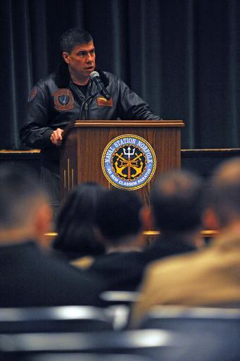 | Keywords: Naval Station Norfolk's observance of Woman's History Month 130322-N-SU448-002.jpg en Capt David A Culler Jr commanding officer of Naval Station NAVSTA Norfolk speaks during the Naval Station NAVSTA Norfolk Women's History Month ceremony Mar 22 This year's Women's History Month theme is women inspiring innovation through imagination Celebrating Women in Science Technology Engineering and Mathematics U S Navy photo by Chief Mass Communication Specialist Leah Stiles 2013-03-22 Chief Petty Officer Leah Stiles https //www dvidshub net/image/892604 130322-N-SU448-002 2013-03-22 12 03 NORFOLK VA US PD-USGov-Military-Navy Naval Station Norfolk Women's History Month Images from DoD uploaded by Fæ |