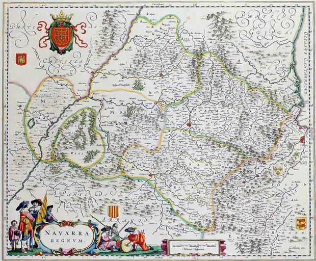 | Keywords: Navarra Regnum.jpg es Navarra regnum Mapa del atlas Theatrum orbis terrarum sive atlas novus de G Blaeu Incluye blasones heráldicos http //bibliotecadigitalhispanica bne es 80/webclient/DeliveryManager application DIGITOOL-3 owner resourcediscovery custom_att_2 simple_viewer pid 102361 creator Willem Janszoon Blaeu ca 1640 PD-old-100 Coats of arms of the Kingdom of Navarre Coats of arms of the crown of Aragon Pales of Aragon in heraldry Coats of arms of Aragon Coats of arms of the Kingdom of Aragon Old maps of Navarre |