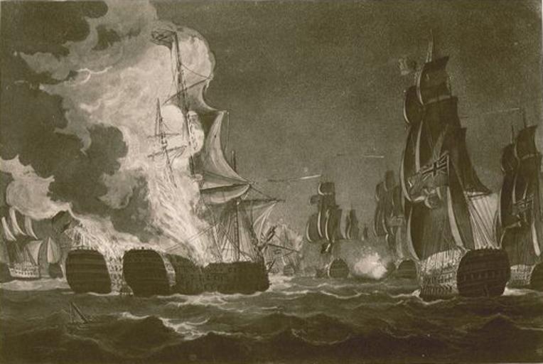 | Keywords: Navio Real Carlos y San Hermenegildo en llamas.jpg en July 12th 1801 the ships of line Real Carlos and San Hermenegildo explot es 12 de Julio de 1801 el navío Real Carlos y el San Hermenegildo explotan al intercambiarse el fuego de sus baterias National Maritime Museum of London Creator Thomas Whitcombe 1816-03-01 PD-old-100 Prints in the National Maritime Museum London Naval battles involving Spain 1801 events Ships of the line of Spain Spain in the 1800s Real Carlos ship 1787 | ||||