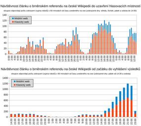| Keywords: Návštěvnost článku o brněnském referendu 2016 na Wikipedii.svg cs Grafy znázorňují počet návštěv článku Referendum o poloze hlavního nádraží v Brně 2016 na české Wikipedii v jednotlivých hodinách okolo doby konání referenda 7 8 října Nahoře Návštěvnost článku o brněnském referendu na české Wikipedii do uzavření hlasovacích místností Dole Návštěvnost článku o brněnském referendu na české Wikipedii od začátku do vyhlášení výsledků 2016-10-09 own Marek Blahuš other versions cc-zero Brno main railway station referendum 2016 Wikipedia article traffic statistics |