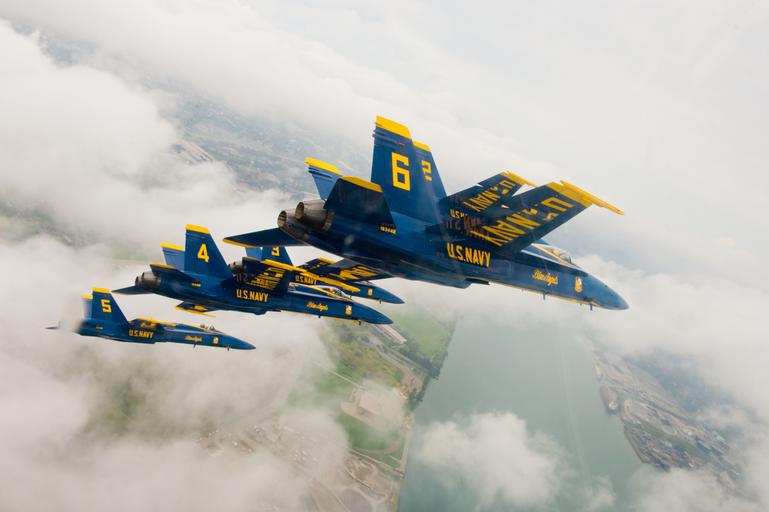 Keywords: navy blue angels flying aircraft military usa plane skyline fighter jets f a-18 hornet demonstration team formation precision squadron teamwork flight