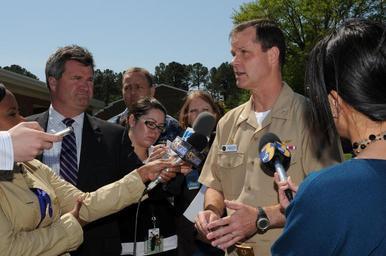 | Keywords: Navy distributes emergency funds after crash 120409-N-DC018-083.jpg en Capt Bob Geis commanding officer of Naval Air Station Oceana is interviewed by members of the Hampton Roads media during the Navy's distribution of emergency funds to residents of the Mayfair Mews Apartments who were affected by the April 6 2012 crash of an F/A-18D Hornet The aircraft damaged the apartment complex after crashing shortly after takeoff 2012-04-09 Petty Officer 3rd Class Antonio Turretto Ramos https //www dvidshub net/image/557445 120409-N-DC018-083 2012-04-10 23 42 VIRGINIA BEACH VA US PD-USGov-Military-Navy People at Naval Air Station Oceana Images from DoD uploaded by Fæ |