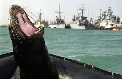 | Keywords: Navysealion.jpg Central Command Area of Responsibility Jan 29 2003 -- Zak a 375-pound California sea lion shows his teeth during one of many training swims taking place in the Central Command AOR Zak is participating in the Space and Naval Warfare Systems Center ™s Shallow Water Intruder Detection System SWIDS program Zak has been trained to locate swimmers near piers ships and other objects in the water considered suspicious and a possible threat to military forces in the area SWIDS program has been deployed as part of the continued effort to support missions under Operation Enduring Freedom U S Navy Photograph by Photographers Mate First Class Brien Aho http //www news navy mil/view_single asp id 4356 2003-01-29 Photographers Mate First Class Brien Aho PD Work US Navy PD-USGov-Military-Navy Zalophus californianus United States Navy Marine Mammal Program |
