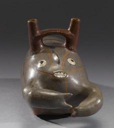| Keywords: Nazca - Lobster Effigy Vessel - Walters 20092055.jpg The coast of Peru is bathed in the Humboldt Current which sweeps cold water from the Antarctic along the South American coast and northwards to Mexico and the Pacific Northwest Rich in plankton and other marine animals the Humboldt Current supports one of the world's most fertile fishing grounds Early Andean peoples harvested its bounty with fish and shellfish being a primary source of protein not only for coastal peoples but also those in the highlands This lobster effigy vessel with its small bridge-spout handle typical of Nasca ceramics is a masterful example of the ceramic effigy vessel form AD 300-600 Early Intermediate Phases IIII-IV earthenware slip paint H 5 5/16 x L 9 1/2 x W 4 1/8 in 13 49 x 24 13 x 10 41 cm accession number 2009 20 55 80210 Economos Works of Art date and mode of acquisition unknown John G Bourne 1990s by purchase Walters Art Museum Gift of John Bourne 2009 place of origin South Coast Walters Art Museum license Pre-Columbian art in the Walters Art Museum Nazca double spouted ceramic vessels Media contributed by the Walters Art Museum needs category review Nazca ceramic effigy vessels |
