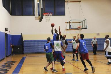 | Keywords: NBK MWR hosts championship basketball game 150121-N-OO032-139.jpg en Logistics Specialist Seaman Felix Mapanda an Oakland Calif native and Naval Hospital Bremerton basketball team number 5 shoots during a Morale Welfare and Recreation intramural sports preseason championship basketball game at Naval Base Kitsap Bangor Fitness Center The Navy's intramural sports program follows the motto Fitness for Life providing another outlet to promote fitness and establish espirit de corps U S Navy photo by Mass Communication Specialist 2nd Class Cory Asato/Released <br>Unit Navy Media Content Services 2015-01-21 Petty Officer 2nd Class Cory Asato https //www dvidshub net/image/1745409/nbk-mwr-hosts-championship-basketball-game 150121-N-OO032-139 2015-01-31 03 40 SILVERDALE WA US PD-USGov-Military-Navy Naval Base Kitsap Images from DoD uploaded by Fæ |