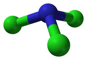 | Keywords: NCl3-by-ED-from-CRC-91-3D-balls-web.png Ball-and-stick model of the the nitrogen trichloride molecule NCl<sub>3</sub> Colour code Nitrogen N blue Chlorine Cl green Structural information determined by gas-phase electron diffraction from http //www hbcpnetbase com/ CRC Handbook 91<sup>st</sup> edition page 9 “25 Image generated in http //accelrys com/products/discovery-studio/visualization/discovery-studio-visualizer html Accelrys DS Visualizer Own 2011-03-13 Ben Mills Benjah-bmm27 Images by Ben Mills Nitrogen trichloride |