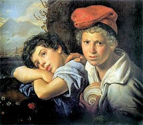 | Keywords: Neapolitan Fisherboys by Orest Kiprensky.jpg Artwork Creator Orest Kiprensky 1829 Oil on canvas Institution Russian Museum not on view http //nearyou ru/kiprensk/0kipr4 html Русский музей object history credit line accession number http //www artcyclopedia ru/neapolitanskie_malchiki-rybaki_1829_h_m_grm-kiprenskij_orest_adamovich htm artcyclopedia ru PD-old-100 <gallery> File 1829 Orest Kiprensky 002 jpg </gallery> PD-old-100 DEFAULTSORT Kiprensky Orest Neapolitan Fisherboys Genre paintings by Orest Kiprensky 19th-century paintings in the Russian Museum Works of Orest Kiprensky in the Russian museum Children of Naples Children in art Romantic paintings of Italian men |