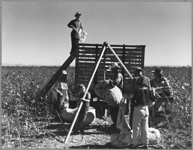 | Keywords: Near Coolidge, Maricopa County, Arizona. These pickers are all members of families who live and work . . . - NARA - 522207.jpg Scope and content Full caption reads as follows Near Coolidge Maricopa County Arizona These pickers are all members of families who live and work on the project -- here shown harvesting their own cotton General notes 522207 Local identifier 83-G-44038 Department of Agriculture Bureau of Agricultural Economics Division of Economic Information ca 1922 - ca 1953 NARA-Author Lange Dorothea 1895-1965 Photographer 1372774 <br /> Still Picture Records Section Special Media Archives Services Division NWCS-S National Archives at College Park 8601 Adelphi Road College Park MD 20740-6001 11/1940 Record group Record Group 83 Records of the Bureau of Agricultural Economics 1876 - 1959 Record group ARC 412 Photographic Prints Documenting Programs and Activities of the Bureau of Agricultural Economics and Predecessor Agencies compiled ca 1922 - ca 1947 documenting the period ca 1911 - ca 1947 Series ARC 521048 File unit File unit ARC Variant control numbers NAIL Control Number NWDNS-83-G-44038 Other versions <gallery> File Near_Coolidge _Maricopa_County _Arizona _These_pickers_are_all_members_of_families_who_live_and_work_ _ _ _-_NARA_-_522207 tif tif File Near_Coolidge _Maricopa_County _Arizona _These_pickers_are_all_members_of_families_who_live_and_work_ _ _ _-_NARA_-_522207 jpg jpg </gallery> NARA-cooperation PD-USGov Dorothea Lange Maricopa County Arizona |