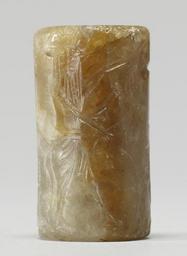 | Keywords: Near Eastern - Cylinder Seal with Bull and Lion on Hind Legs - Walters 42720 - Side B.jpg The scene depicts two sets of battling beasts The first is a strangely posed bull-man wrestling with a fantastic lion-like creature; the second is another strangely posed bull-man wrestling with a composite horned caprid/bull creature There is one register of cuneiform date brown and white stone cm 2 9 1 5 accession number 42 720 8235 Sadie Jones Mrs Henry Walters New York date and mode of acquisition unknown Sale Joseph Brummer New York 1941 Walters Art Museum 1941 by purchase Museum purchase 1941 Inscription place of origin Mesopotamia Walters Art Museum license Cylinder seals in the Walters Art Museum Art of the ancient Near East Walters cylinder seal 42720 Cuneiform on cylinder seals Walters Art Museum cylinder seals with cuneiform Cuneiform on media IGI cuneiform Ši cuneiform Ud cuneiform DINGIR god-as-star Sumerogram Media contributed by the Walters Art Museum needs category review |
