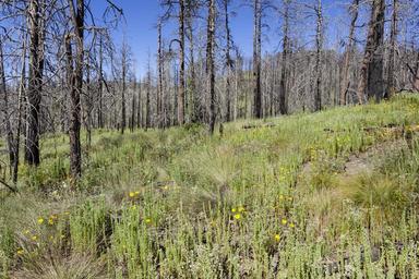 | Keywords: West side of the Black Range, south of McKnight Peak on the divide between Quaking Aspen Canyon and East Canyon, 32.97041 -107.85081, Grant County, New Mexico, 18 Sep 2016. Recently burned Douglas fir forest, with <i>Chenopodium, Achillea millefolium, Artemisia carruthii, Erigeron neomexicanus, Heliomeris multiflora, Hieracium fendleri, La&eum;nnecia schiedeana, Pseudognaphalium, Solidago wrightii, Cerastium fastigiatum, Commelina dianthifolia, Carex, Lupinus neomexicanus, Oxytropis lambertii, Quercus gambelii, Oxalis decaphylla, Pseudotsuga menziesii, Penstemon barbatus, Blepharoneuron tricholepis, Bromus ciliatus, Koeleria macrantha, Muhlenbergia montana, Populus tremuloides,</i> etc. |