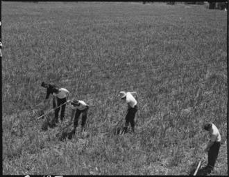 | Keywords: Near San Lorenzo, California. "Victory Corps" weeding garlic field. Thirty- seven high school have . . . - NARA - 537534.jpg Scope and content The full caption for this photograph reads Near San Lorenzo California Victory Corps weeding garlic field Thirty- seven high school have been recruited and organized at the request of Caucasian growers to meet labor shortage This land was part of acreage leased and operated by five farmers of Japanese ancestry and their families prior to the evacuation General notes 537534 Local identifier 210-G-C185 Department of the Interior War Relocation Authority 02/16/1944 - 06/30/1946 NARA-Author Lange Dorothea 1895-1965 Photographer 1372774 <br /> Still Picture Records Section Special Media Archives Services Division NWCS-S National Archives at College Park 8601 Adelphi Road College Park MD 20740-6001 1942-05-05 Record group Record Group 210 Records of the War Relocation Authority 1941 - 1989 Record group ARC 537 Central Photographic File of the War Relocation Authority compiled 1942 - 1945 Series ARC 536000 File unit File unit ARC Variant control numbers NAIL Control Number NWDNS-210-G-C185 Other versions <gallery> File Near_San_Lorenzo _California _ Victory_Corps _weeding_garlic_field _Thirty-_seven_high_school_have_ _ _ _-_NARA_-_537534 tif tif File Near_San_Lorenzo _California _ Victory_Corps _weeding_garlic_field _Thirty-_seven_high_school_have_ _ _ _-_NARA_-_537534 jpg jpg </gallery> NARA-cooperation PD-USGov Japanese American internment processing in San Lorenzo California Farms in California Dorothea Lange Victory Corps |