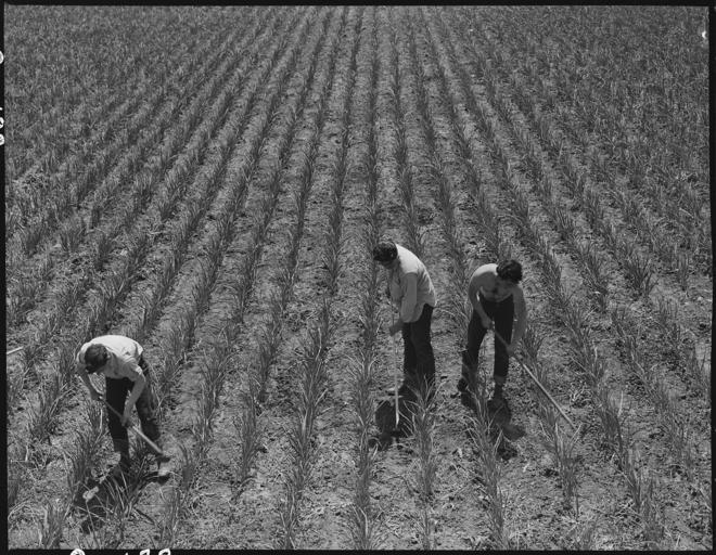 | Keywords: Near San Lorenzo, California. "Victory Corps" weeding garlic field. Thirty-seven high school boys . . . - NARA - 537537.jpg Scope and content The full caption for this photograph reads Near San Lorenzo California Victory Corps weeding garlic field Thirty-seven high school boys have been recruited and organized at the request of Caucasian growers to meet labor shortage This land was part of the acreage leased and operated by five farmers of Japanese ancestry and their families prior to evacuation General notes 537537 Local identifier 210-G-C188 Department of the Interior War Relocation Authority 02/16/1944 - 06/30/1946 NARA-Author Lange Dorothea 1895-1965 Photographer 1372774 <br /> Still Picture Records Section Special Media Archives Services Division NWCS-S National Archives at College Park 8601 Adelphi Road College Park MD 20740-6001 1942-05-05 Record group Record Group 210 Records of the War Relocation Authority 1941 - 1989 Record group ARC 537 Central Photographic File of the War Relocation Authority compiled 1942 - 1945 Series ARC 536000 File unit File unit ARC Variant control numbers NAIL Control Number NWDNS-210-G-C188 Other versions <gallery> File Near_San_Lorenzo _California _ Victory_Corps _weeding_garlic_field _Thirty-seven_high_school_boys_ _ _ _-_NARA_-_537537 tif tif File Near_San_Lorenzo _California _ Victory_Corps _weeding_garlic_field _Thirty-seven_high_school_boys_ _ _ _-_NARA_-_537537 jpg jpg </gallery> NARA-cooperation PD-USGov Japanese American internment processing in San Lorenzo California Farms in California Dorothea Lange Victory Corps |