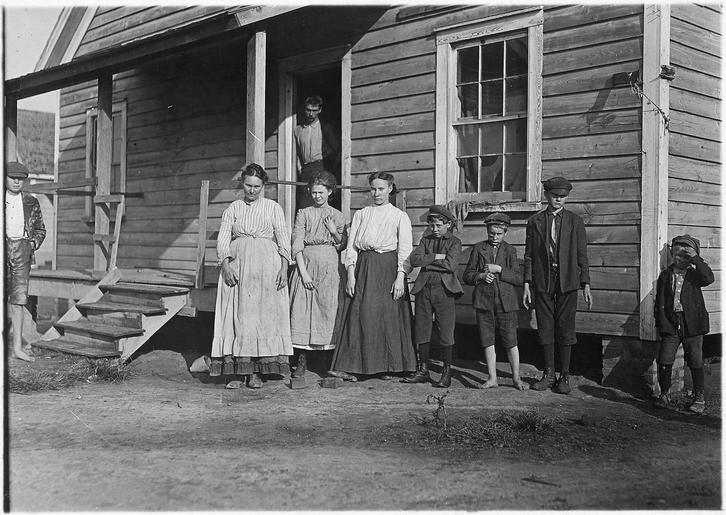 | Keywords: Nearly all of family works in mill. Father in doorway, Mrs. A.L. Conyers (at end) not in mill. Llewlyn, Bessie... - NARA - 523132.tif Scope and content General notes 523132 Local identifier 102-LH-395 Department of Commerce and Labor Children's Bureau 1912 - 1913 NARA-Author Hine Lewis Wickes 1874-1940 Photographer 1122914 <br /> Still Picture Records Section Special Media Archives Services Division NWCS-S National Archives at College Park 8601 Adelphi Road College Park MD 20740-6001 1908-12-05 Record group Record Group 102 Records of the Children's Bureau 1908 - 2003 Record group ARC 431 National Child Labor Committee Photographs taken by Lewis Hine compiled ca 1912 - ca 1912 documenting the period 1908 - 1912 Series ARC 523064 File unit File unit ARC Variant control numbers NAIL Control Number NWDNS-102-LH-395 yes Other versions <gallery> File Nearly_all_of_family_works_in_mill _Father_in_doorway _Mrs _A L _Conyers_ at_end _not_in_mill _Llewlyn _Bessie _-_NARA_-_523132 tif tif File Nearly_all_of_family_works_in_mill _Father_in_doorway _Mrs _A L _Conyers_ at_end _not_in_mill _Llewlyn _Bessie _-_NARA_-_523132 jpg jpg </gallery> NARA-cooperation PD-USGov 1908 in South Carolina Black and white photographs of families People and stairs Wooden stairs Veranda stairs Outside stairs in South Carolina Dillon South Carolina Child labor in the United States NARA TIF images with categorized JPGs |