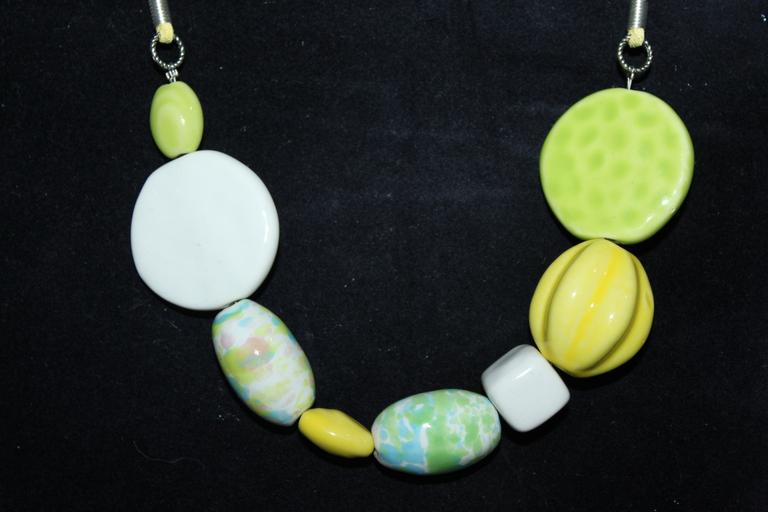 Keywords: necklace girl woman female lady young beautiful dress colorful jewelry jewellery necklaces ceramic beads multi-colored artistically strubg beads strings of beads