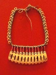 | Keywords: Necklace, sperm whale teeth, glass beads, spondylus disks, plant fiber, Marshall Islands, 1891 - Staatlichen Museums für Völkerkunde München - DSC08298.JPG Exhibit in the Oceanic collection of the Staatlichen Museums für Völkerkunde München Maximilianstraße 42 Munich Germany Necklace made of sperm whale teeth glass beads spondylus disks plant fiber Marshall Islands 1891 I took this photograph 2011-05-03 03 48 16 Daderot Public domain Dauerausstellung Ozeanien des Staatlichen Museums für Völkerkunde München |