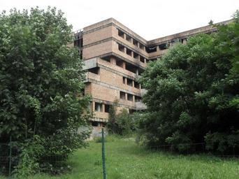 | Keywords: Nedostavěné hornické sanatorium Teplice Xa.jpg cs Tato budova k nalezení na Pražské ulici pod Obchodní akademií měla kdysi sloužit jako hornické sanatorium Po změně režimu se měla dostavět jako ubytování pro lázeňský perzonál ale na to nezbyly peníze a stavba chátrá Fotografie je z roku 2008 v roce 2012 je už stavba obehnána plotem a obrostlá dřevinami záměrně vysázenými Stále se ovšem dovnitř dá dostat průlezem u Sovětského památníku own Takmocsekretovanej 2012 Nedostavěné hornické sanatorium Teplice Cc-zero |